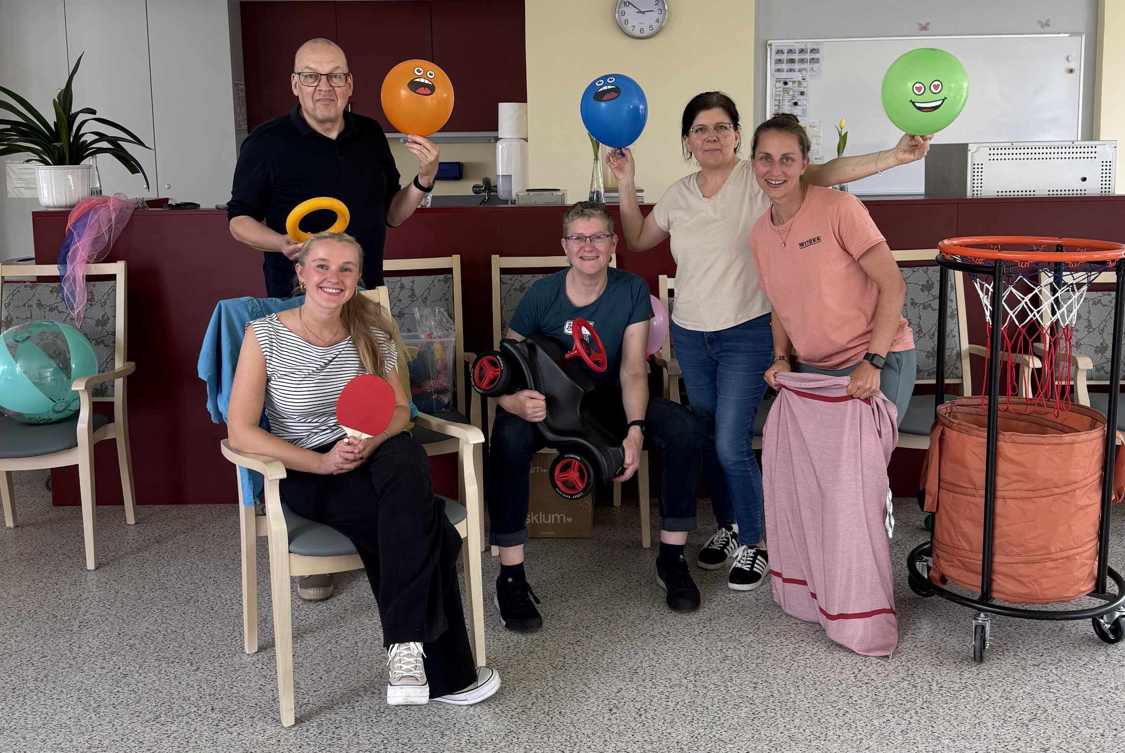 In unserer eigens erdachten Disziplin Pflegealltag-Challenge "Fit wie ein Vogel" durchlaufen die Teilnehmenden einige Stationen, bei denen sie Aufgaben erfüllen müssen. Das Team besteht aus 5 Personen. Bitte plant eine Person im Rollstuhl ein. Falls ihr keinen Rollstuhlfahrer für das Team findet, können die Aufgaben von einem anderen Teammitglied, das sich in den Rollstuhl setzt, übernommen werden. Ziel ist es, schnellst- und bestmöglich die Stationen zu durchlaufen und die Ziellinie zu überschreiten. Aber die Aufgaben müssen auch korrekt ausgeführt werden, sonst gibt es Strafzeiten.