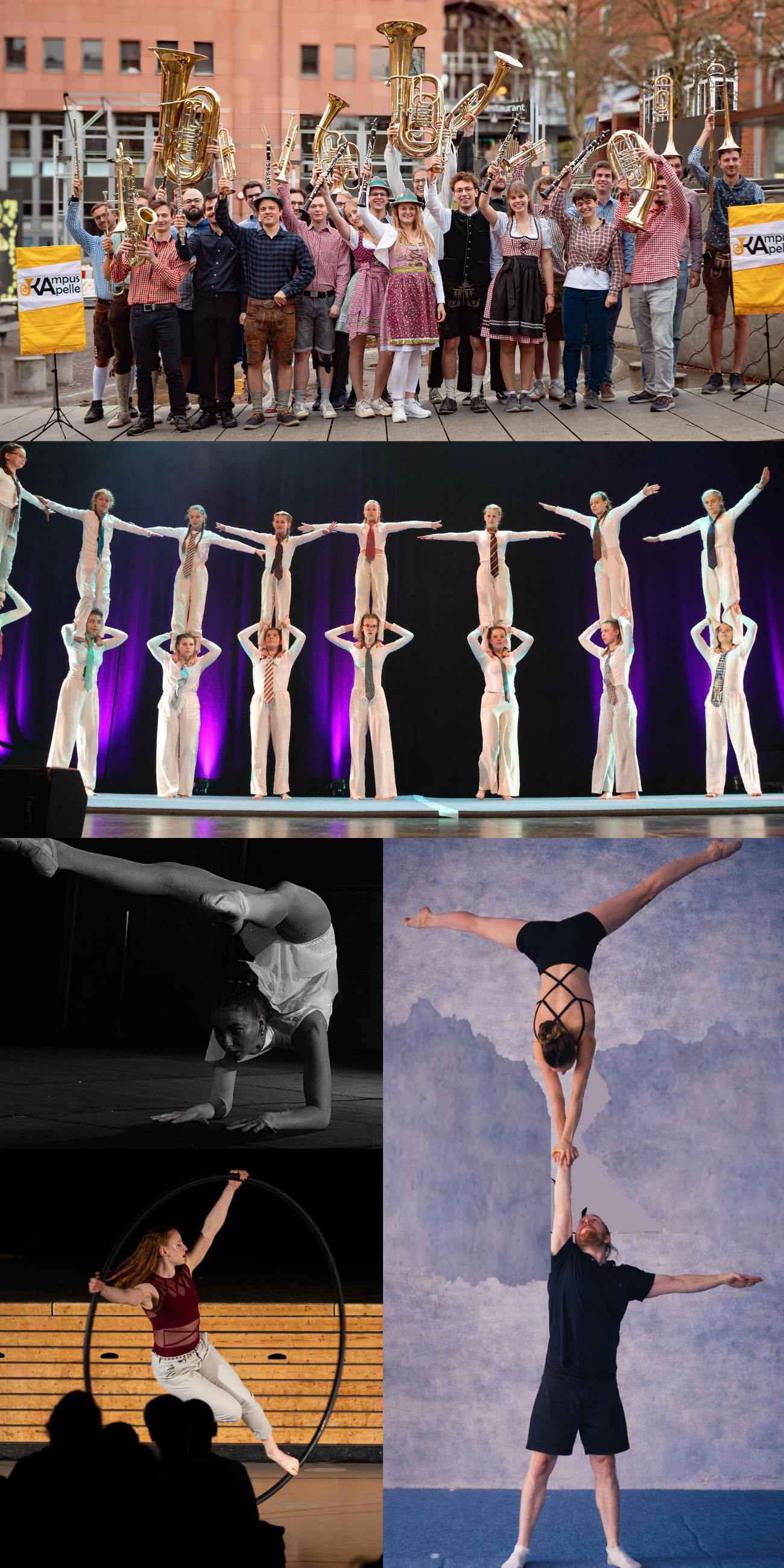 Das Akrobatik Duo Lilith und Johannes zeigt in ihrer mitreißenden Darbietung dass Bewegung zu Kunst werden kann. Auf der Bühne vereinen sie Kraft, Balance und Musik auf elegante und humorvolle Weise. Dabei erzählt die Darbietung von einer ungewöhnlichen Begegnung zweier Menschen, deren Beziehung eine eigenwillige Dynamik bestimmt.