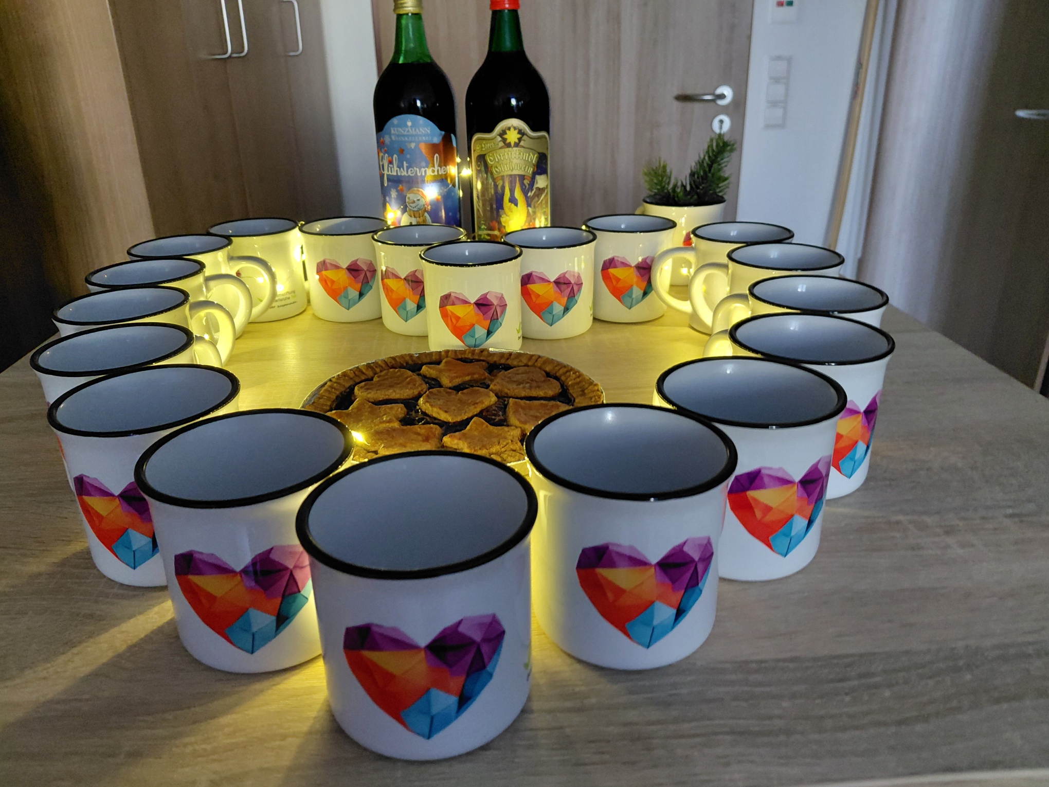 In der Seniorenresidenz am Wetterbach und in Pflege und Wohnen Alte Mälzerei finden in den nächsten Wochen Adventsbasare statt. Dafür haben wir unseren Tassenvorrat erweitert mit schönen Herztassen, die nun zum Punsch- oder Glühweintrinken einladen. Kommen Sie gerne vorbei! An folgenden Terminen wird es bei uns weihnachtlich: